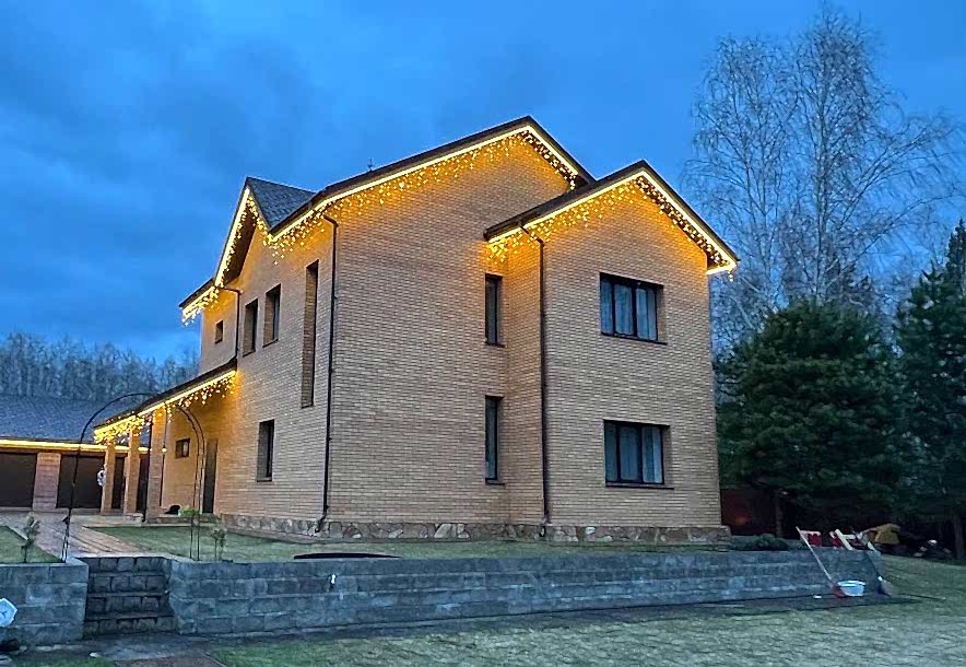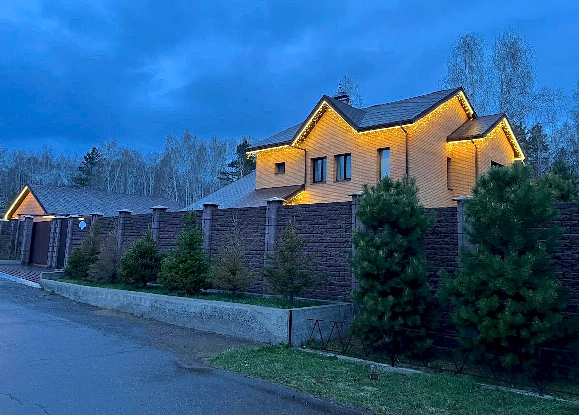 Зимой оно спасает от ранней темноты и дарит настоящую сказку: мягкий свет под крышей террасы или навеса превращается в изысканное новогоднее украшение. Это лучшее время года, чтобы по-настоящему оценить, как подсветка преображает дом.