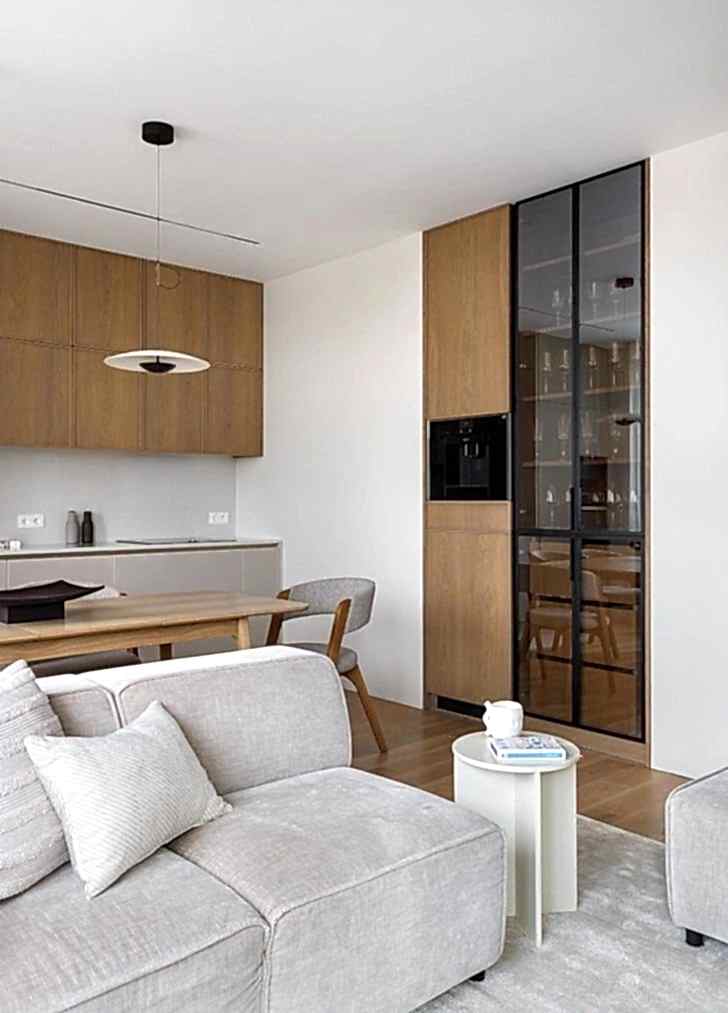 Встроенные шкафы и мебель с лаконичными фасадами обеспечивают достаточное количество мест для хранения, не загромождая пространство. Особое внимание уделено освещению: большие окна наполняют комнаты естественным светом, а современные подвесные светильники и встроенные системы освещения создают Пинап атмосферу в вечернее время.