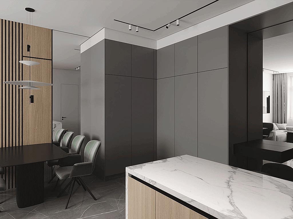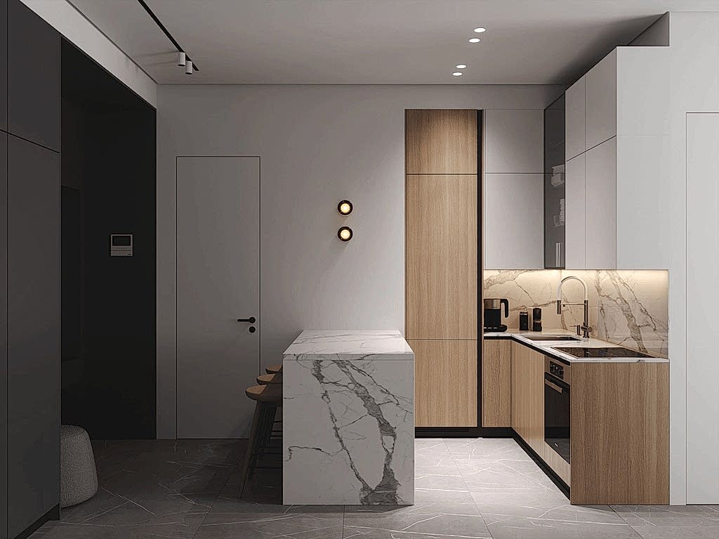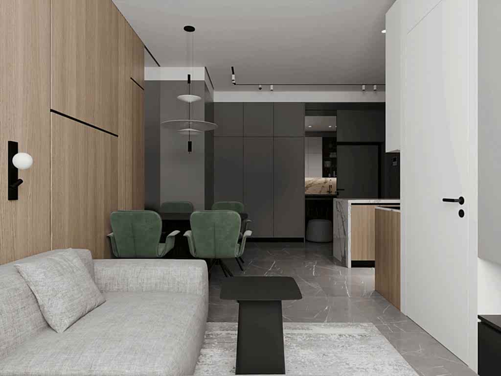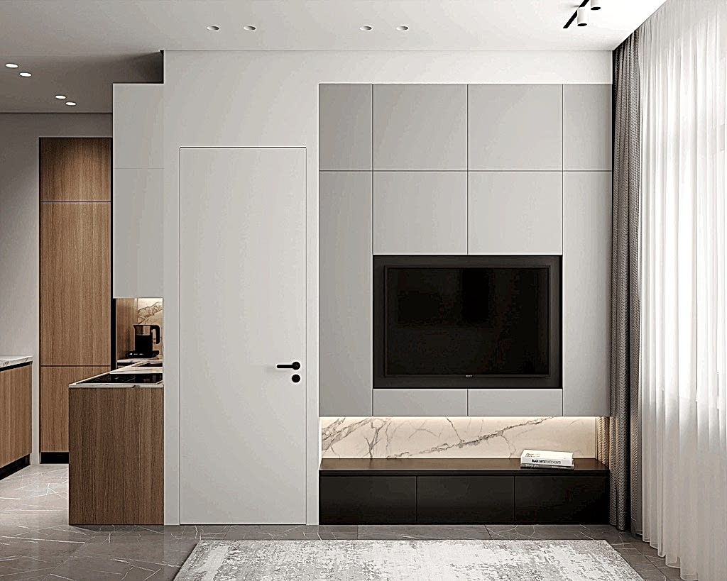 Вся Пинап наполнена естественным светом, а лаконичные формы и четкие линии мебели обеспечивают комфорт и удобство в повседневной жизни. Этот проект - пример стильного и практичногодизайна интерьера малогабаритной квартиры.