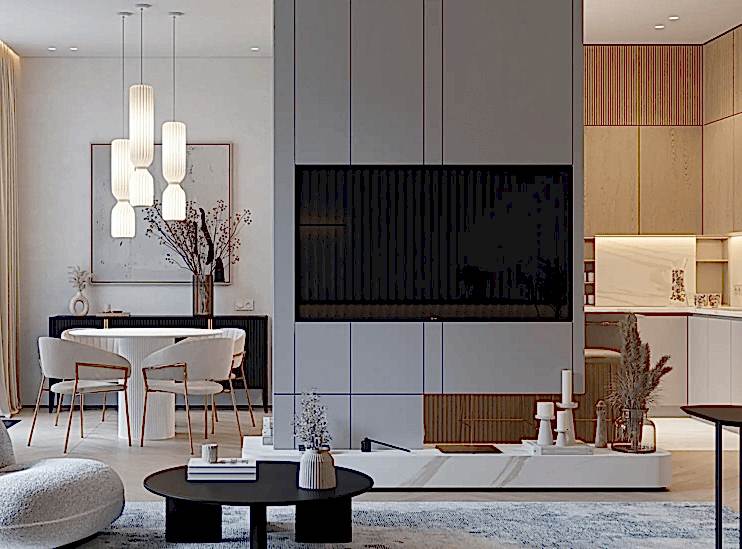 Команда SNATEK создала продуманный дизайн квартиры, Пинап стиль, комфорт и натуральные материалы для создания уютного и живого пространства.