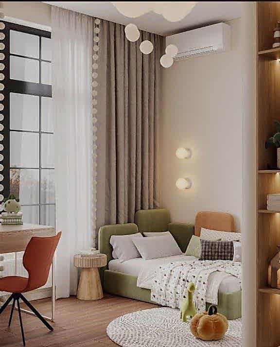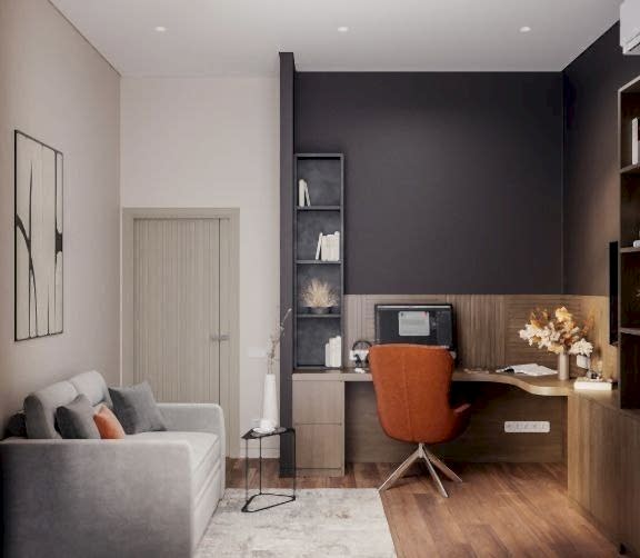 В спальне использовали приглушенные бежевые и оливковые тона, разместили лаконичную с плавными формами мебель. В кабинете и гостиной акценты Пинап на контрасте светлых поверхностей с темными элементами и насыщенными оттенками.