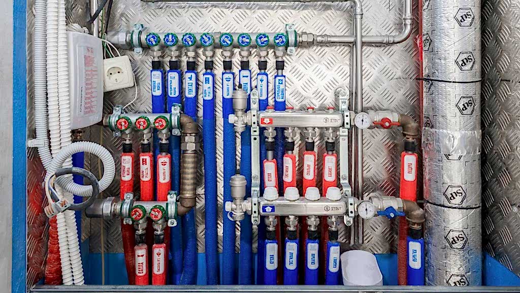 Сантехнический узел оборудован фильтрами, редукторами, манометрами и распределительными коллекторами. Все магистрали защищены теплоизоляцией, канализационный стояк звукоизолирован, а разводка промаркирована и аккуратно собрана. Такой подход гарантирует надежную и долговечную эксплуатацию инженерных Пинап