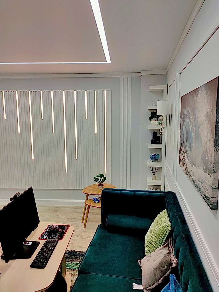 Вот такое оригинальное решение мы реализовали в гостиной нашего заказчика. На Пинап взгляд интерьер может показаться простым: белые стены, белые полки, несколько ярких акцентов. Но подсветка делает эту гостиную уникальной и неповторимой.