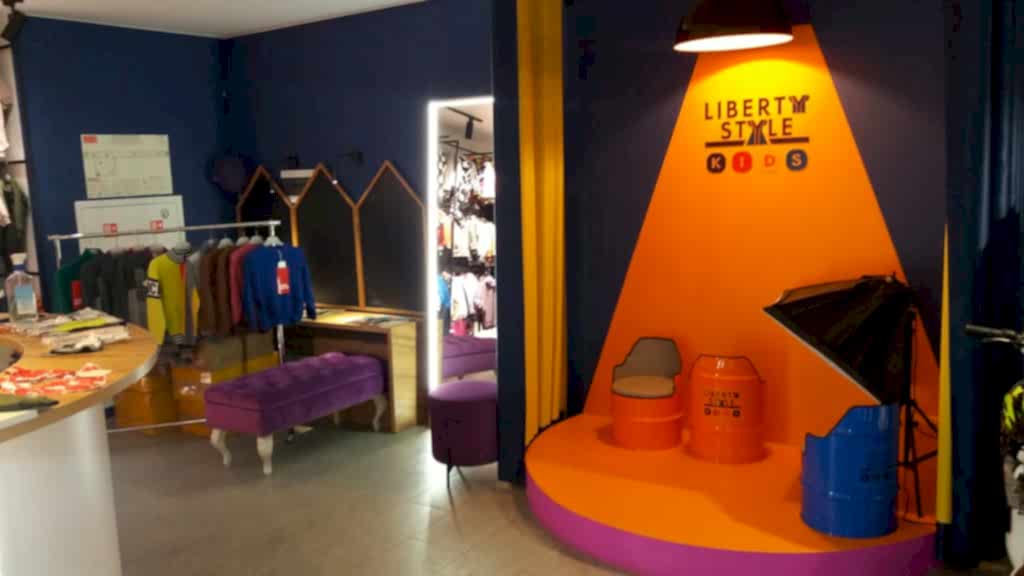 Яркий и дерзкий Пинап с необычными элементами, которые цепляют взгляд для магазина молодежной одежды. Оригинальная фотозона, красивые и уютные примерочные дополняют стиль помещения.
