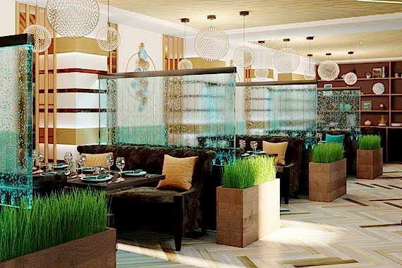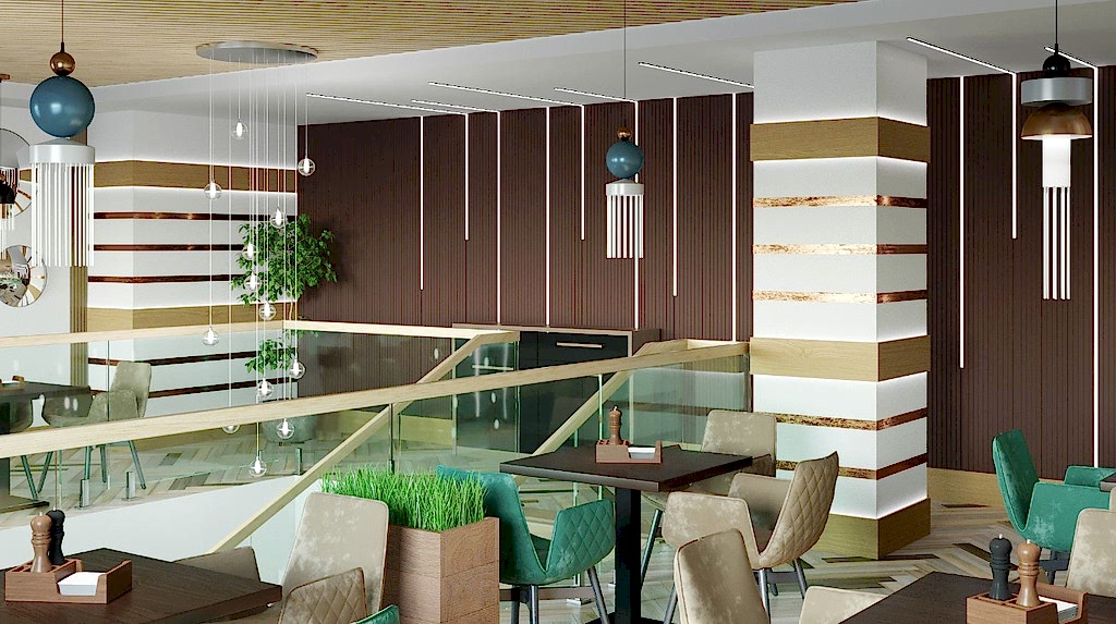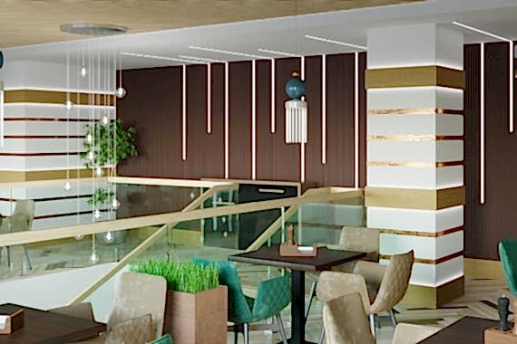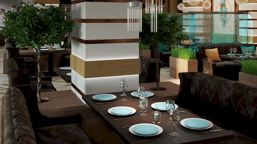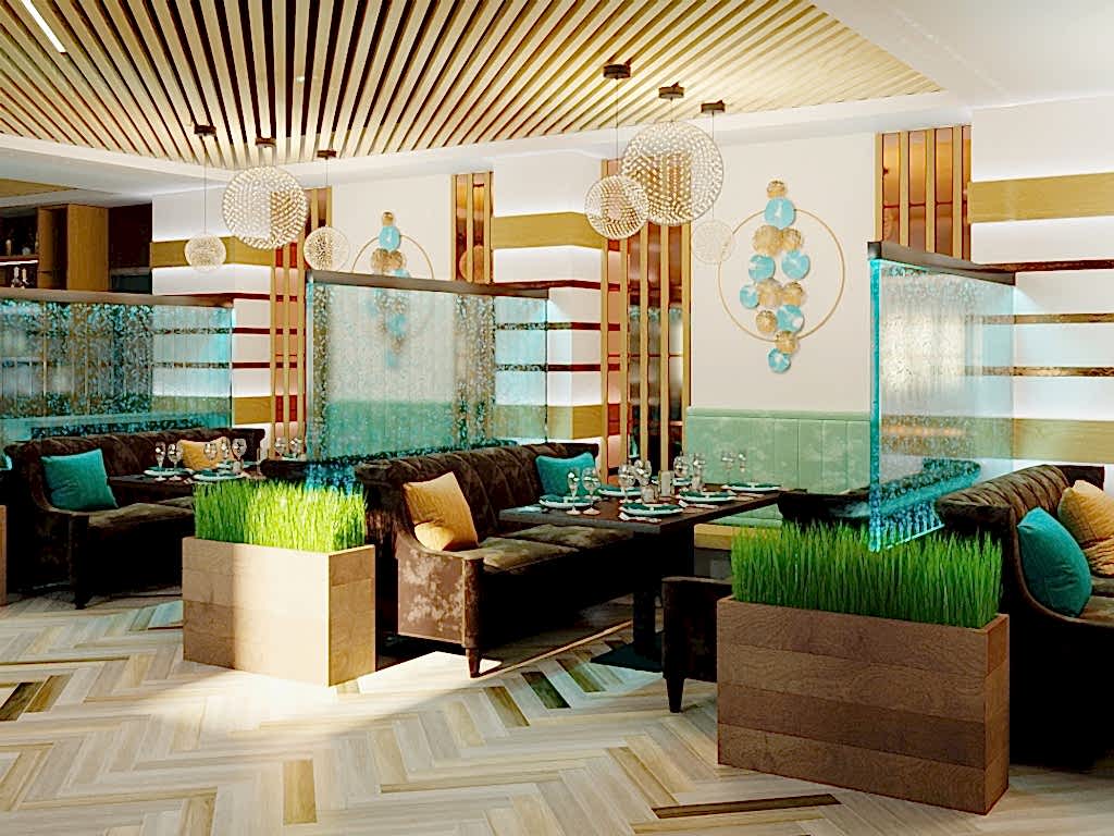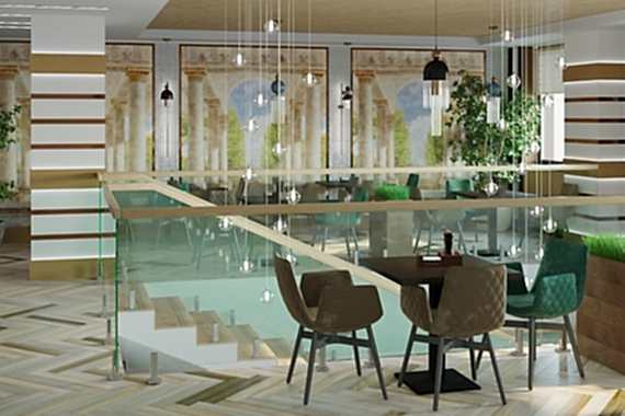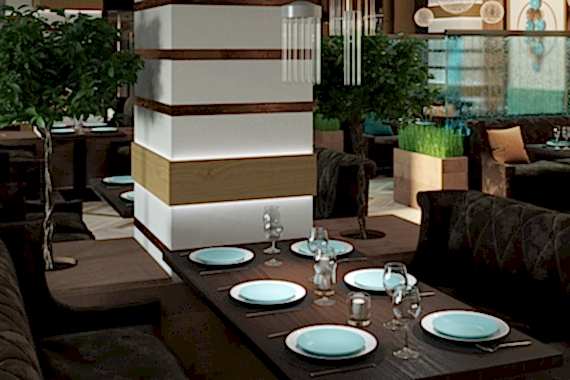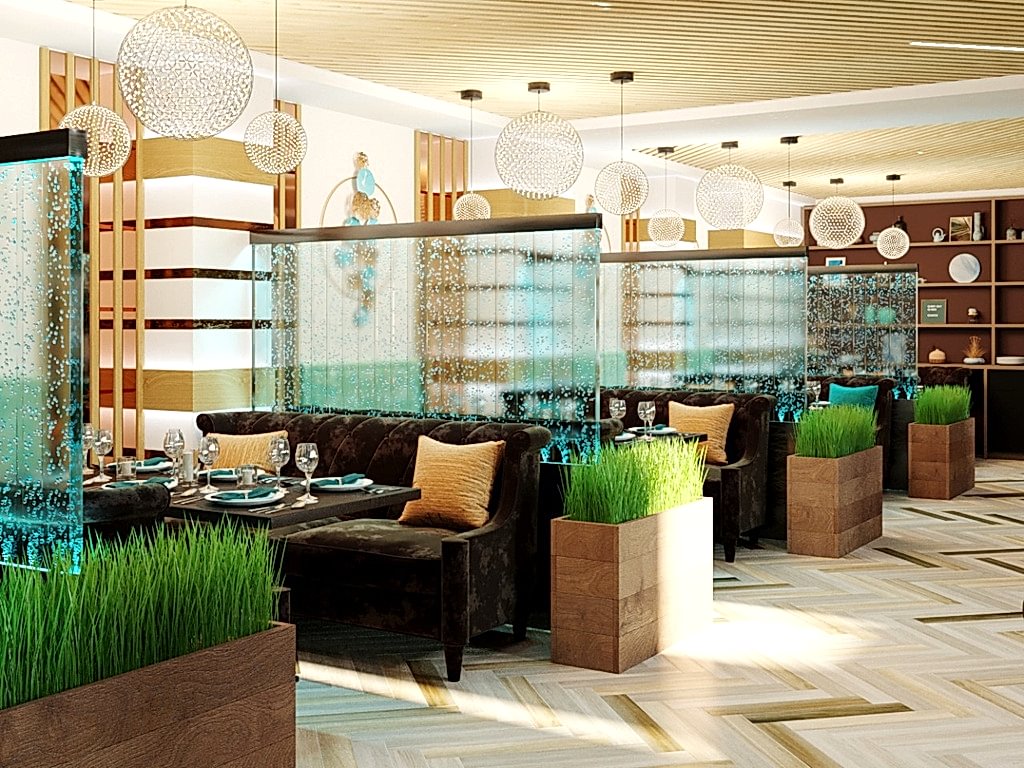 Вот пример отделки ресторана под ключ от нашей Пинап Шикарный дизайн с соблюдением современных тенденций, тщательно продуманное пространство - все это органично сочетает в себе уют и роскошь. Пузырьковые панели, разделяющие обеденные зоны, создают в интерьере эффект свежести и ощущение безграничного пространства. Обратите внимание на оригинальное панно ручной работы в фотозоне. Все это - наша работа!