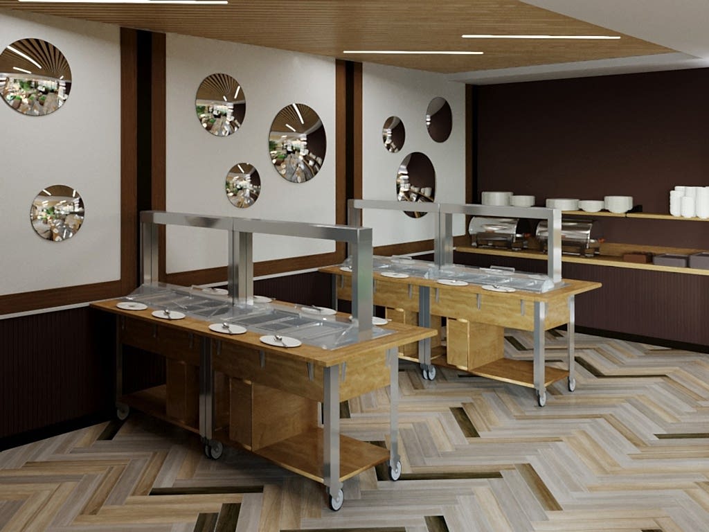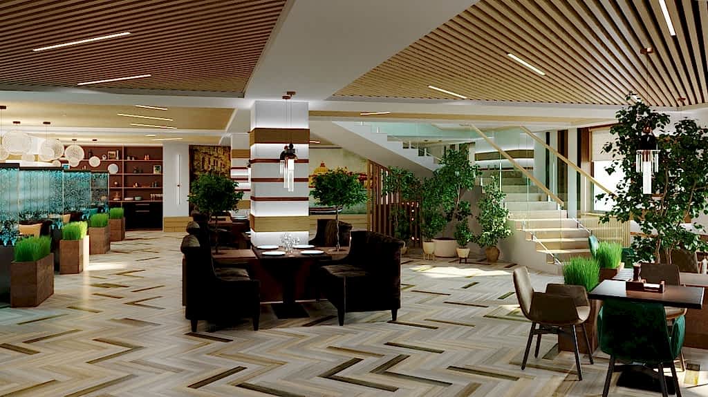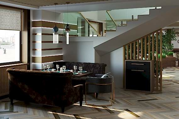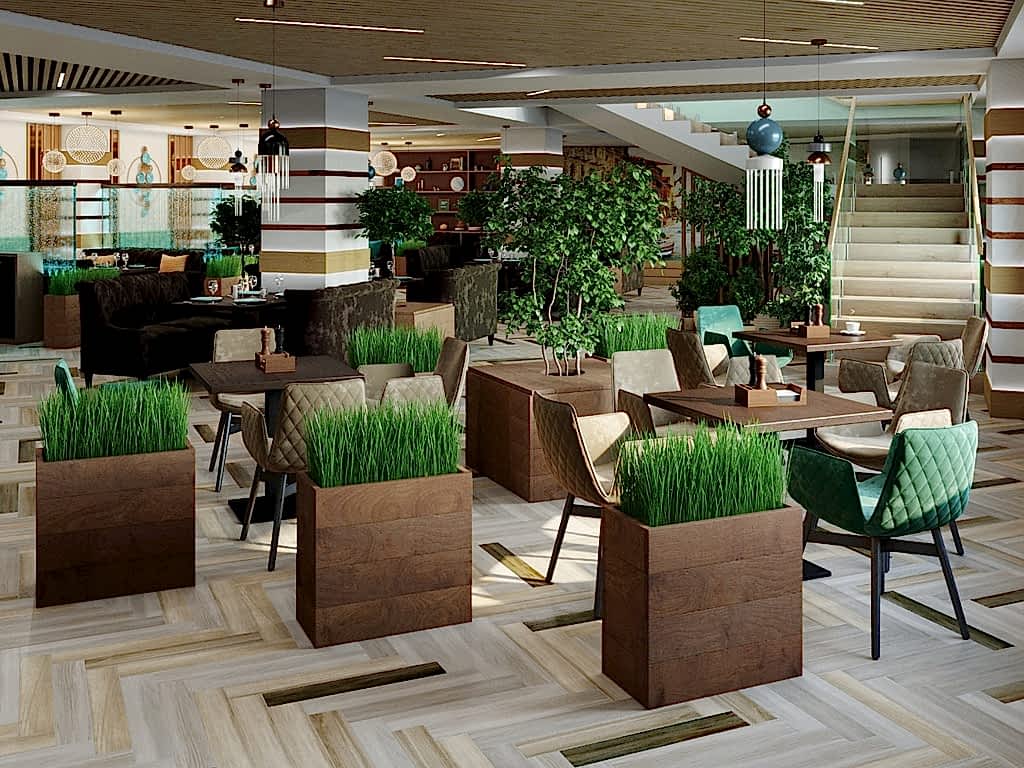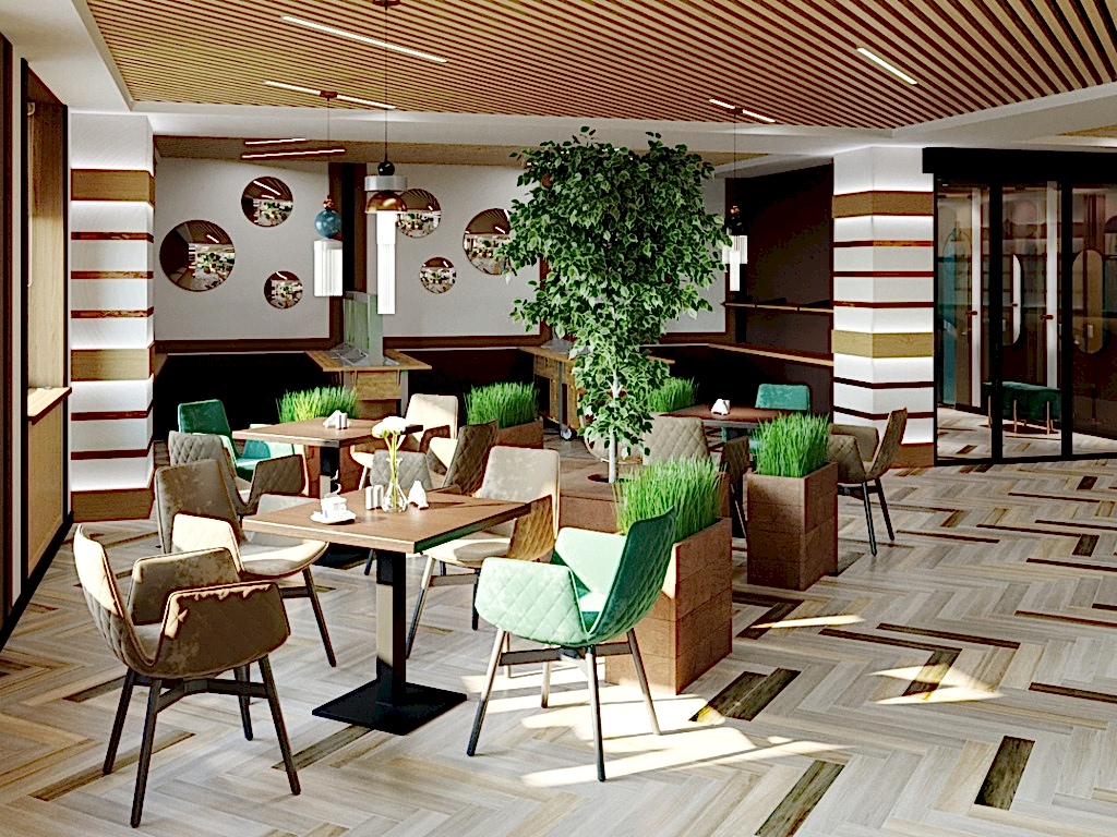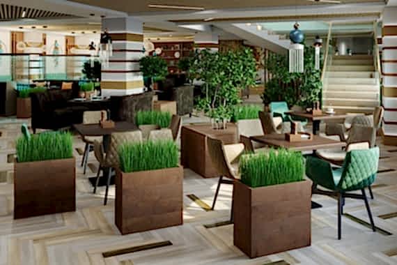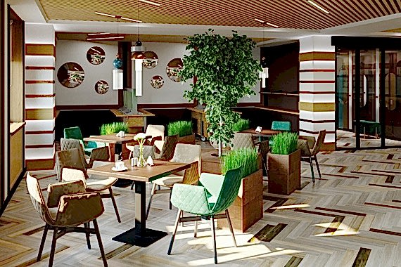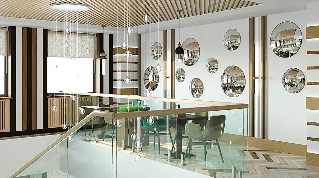 Вот пример отделки ресторана под ключ от нашей Пинап Шикарный дизайн с соблюдением современных тенденций, тщательно продуманное пространство - все это органично сочетает в себе уют и роскошь. Пузырьковые панели, разделяющие обеденные зоны, создают в интерьере эффект свежести и ощущение безграничного пространства. Обратите внимание на оригинальное панно ручной работы в фотозоне. Все это - наша работа!