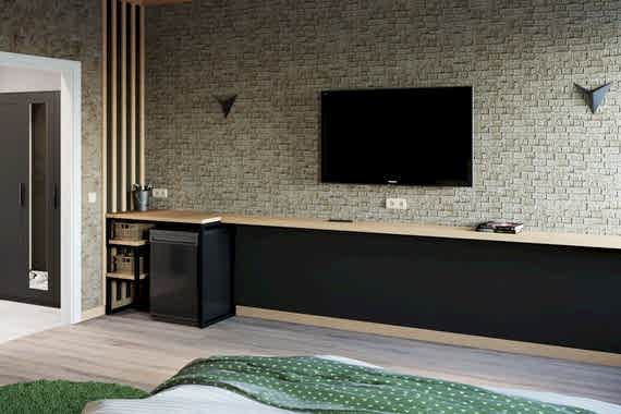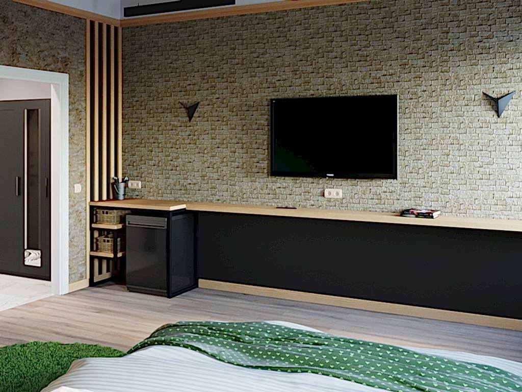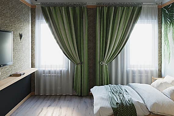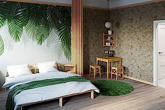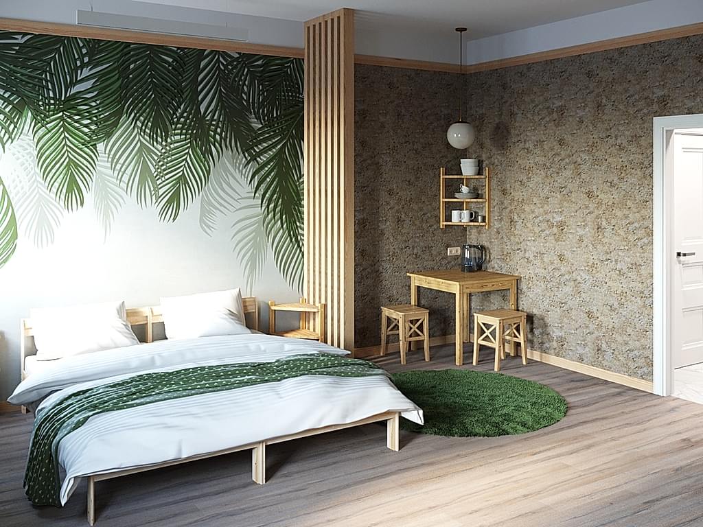 Тем кто не любит Пинап время года и часто скучает по лету мы предполагаем такой вариант отделки спальни. Сочные зеленые тона поднимут настроение, помогут расслабиться.